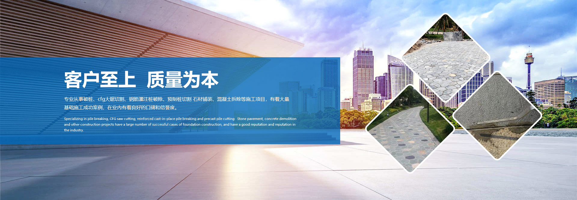 1. 济宁麻豆视频在线观看建筑工程有限公司是专业的麻豆国产视频施工队,施工经验丰富,价格低,规范要求,石材铺装队铺装效果好。公司坐落在美丽和谐的“孔孟之乡,礼仪之邦”的城市——山东济宁,地理位置较好,交通运输便捷,施工技术发达。专业从事破桩、cfg大锯切割、钢筋灌注桩破除、预制桩切割 石材铺装、混凝土拆除等施工项目,有着大量基础施工成功案例,在业内有着良好的口碑和信誉度。
